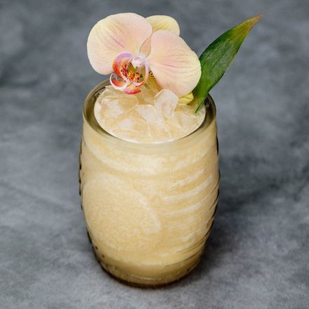 - Hæld Unstrained i et Tiki krus eller highball glas